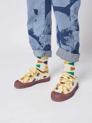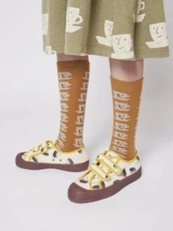 New from Bobo Choses for Autumn/Winter 2021 “Talking Bobo” collection. Toddler and big kid’s ivory dog print trainers with easy to fasten velcro straps and sturdy rubber soles.