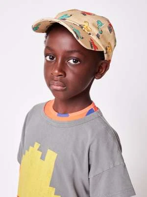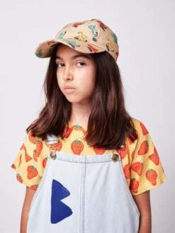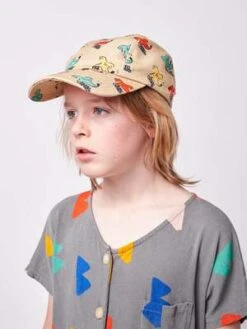 New from Bobo Choses for Spring/Summer 2022 “I’m a Poet” collection. Kid’s baseball style cap with structured brim in a multicolored dog print.