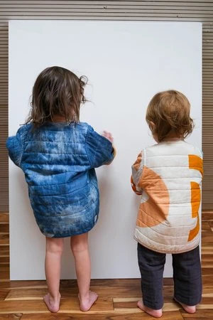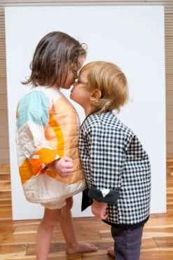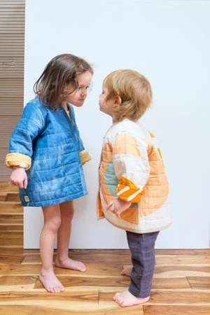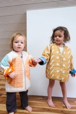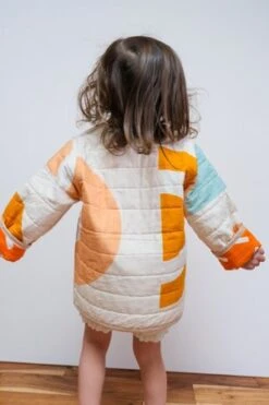 Reversible Gender Neutral Modern and Stylish Quilted jacket for the fashionable Child. This oversized jacket has snap buttons with an effortless look when closed or open! It is the perfect jacket for chilly fall days, but can also be layered with a warmer jacket in the winter.