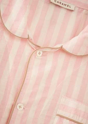 Candy pink stripes make up this playful and classic style pyjama. With a pocket detail and drawstring to tie, this cosy cotton set ensures the utmost comfort for a perfect night’s sleep. 100% cotton.