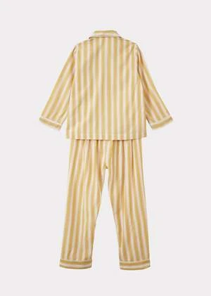 Warm yellow stripes make up this vibrantly coloured pyjama, a playful take on a classic style. With a pocket detail and drawstring to tie, this cosy cotton set ensures the utmost comfort for a perfect night’s sleep. 100% cotton.