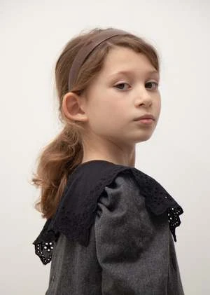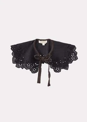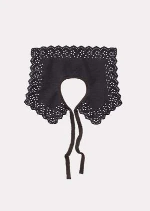 Elevate every ensemble with our Embroidered Broderie Anglaise Collar in black. The pilgrim-inspired design features ties to fasten and can be worn over dresses or blouses to add a wonderfully polished feel to your kids looks.