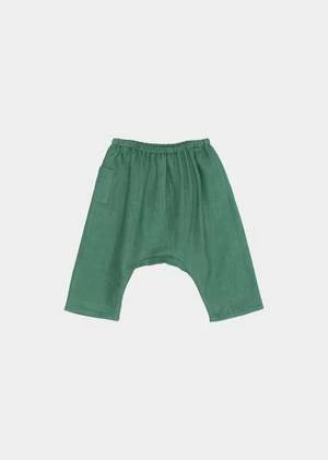 A transitional weather essential: our Ficus Baby Trouser in Emerald Green. Crafted in brushed linen, the delicate yet durable fabric is perfect for your baby’s little adventures. With a gathered tied waist and side pocket detail, the loose silhouette and tactile fabric allow for freedom of movement and easy wearing.