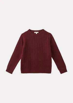 Knitted from heavenly soft cashmere, our Ruby Kids Jumper in rich Burgundy perfectly illustrates the wonderful hues of our Autumn colour palette. With cable knitting detailed in the centre, this is a staple for little wardrobes and makes for effortless layering in the colder months.