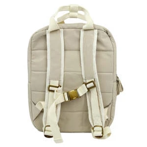 100% Eco Friendly Materials: Waterproof 100% recycled polyester (rpet) outside and inside fabric – Global Recycle Standard Certified. Organic cotton strap. Bronze buckles, rings, zippers. Eco friendly vegan leather. Plastic Free.