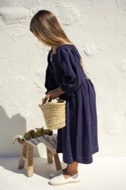 New from House of Paloma ‘One Greek Summer’ for Spring/Summer 2022. Oversized puff sleeves and shirred bodice define this sweet summer dress. Cut from a soft, breathable linen in a deep navy blue.