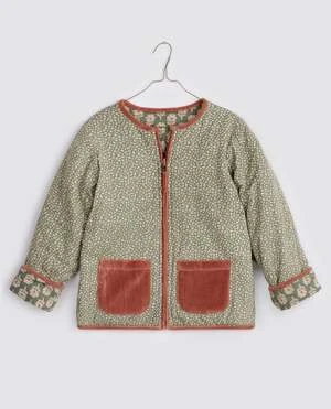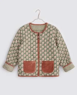 Our Jojo reversible jacket is back. This season the jacket is made in our myrtle floral and our soft cotton velvet. It has a zip up front, sweet little pockets which contrast on each side and bias binding finish to all edges. The jacket is quilted using cotton wadding.
