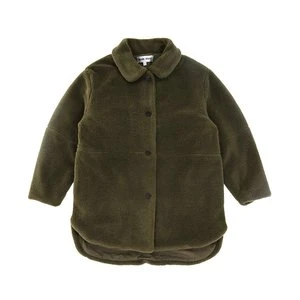 New from Main Story for Autumn / Winter 2020. Italian teddy fleece cocoon coat in dark olive green. Soft, cozy and casual overcoat.