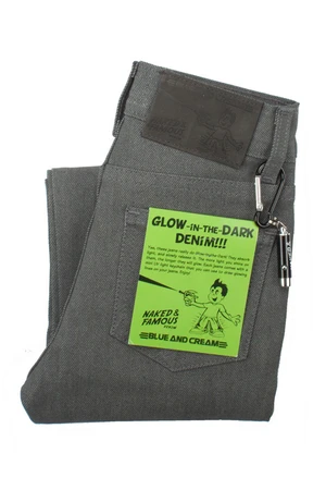 Fun and trendy, your kids will get a kick out of Naked&Famous’s glow in the dark denim! Charge them in the light (sunlight or artificial bulb light) and watch them glow! Jeans will also glow intensely under UV light.