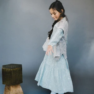 From Nico Nico, now on sale. Galaxy inspired speckled space dyed prairie dress in light blue and white double gauze.