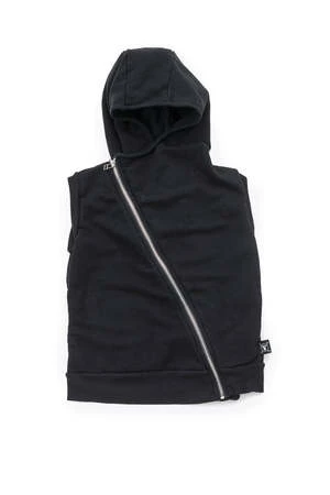 This unisex piece has a moto edge with a totally comfy feel. Asymmetrical zip provides a unique look and allows for easy movement. Relaxed and roomy hood, side pockets.