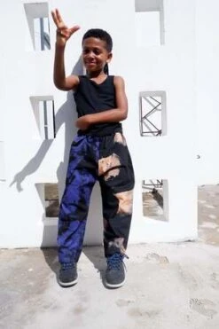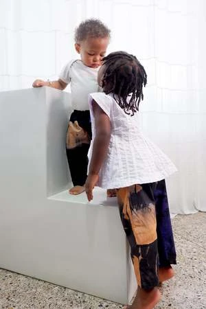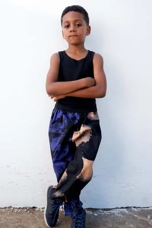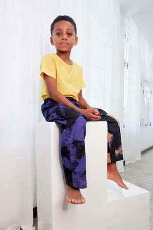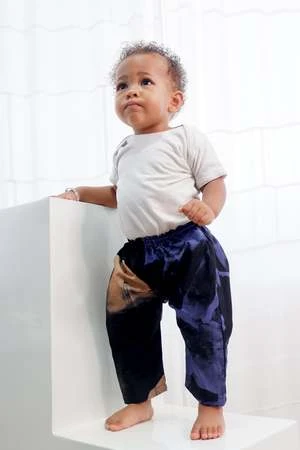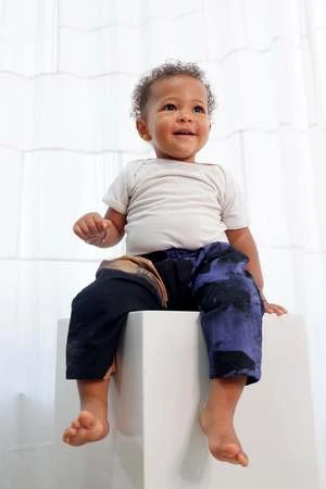 Relaxed cotton trousers with elastic waist. Relaxed fit and easy to pull off and on. These pants can last for a while: roll them up for an infant, and keep wearing them into toddlerhood.