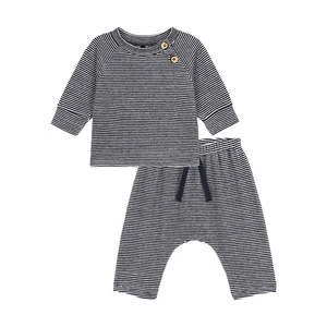 – Matching cardigan and pants with all over stripes