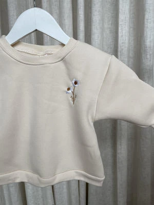Perfect winter sweater set for you baby. Detailed daisy stitched onto a white sweatshirt and matching sweatpants made for a size 12-24 months.