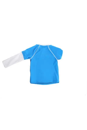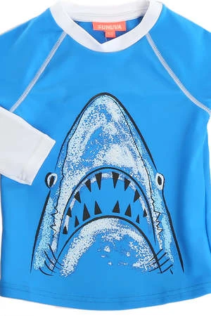 Stylized Rash Guard with Shark graphic for your swimming sweetie face. Note: Size 1-2 is good for a 2 year old.