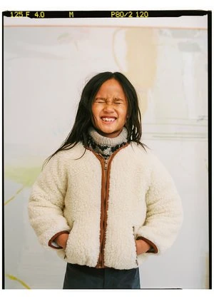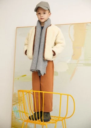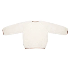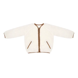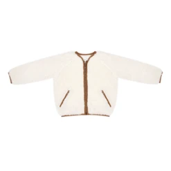 New from The New Society for Autumn/Winter 2021. Soft and fluffy teddy jacket in ivory organic wool with toffee edging.