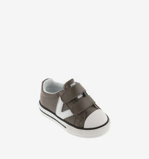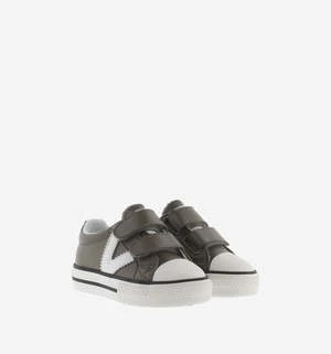 Children’s trainers in synthetic leather with rubber toe and a contrasting white sole. The double velcro strap makes them very easy to get on and off. Victoria side logo. They also come with a high-density insole for improved comfort.