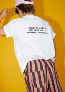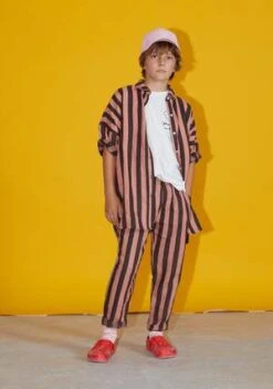 New from Weekend House Kids ‘Everything Grows With Love’ collection for Spring/Summer 2022. Kid’s relaxed fit striped trousers in a bold chocolate brown and dusty pink linen.