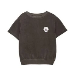 Comfortably oversized organic cotton sweatshirt in a washed chocolate brown. Short sleeves make this sweatshirt ideal for layering. White embroidered patch with gondolier illustration. Pigment dyed for a one-of-a-kind finish on each garment.
