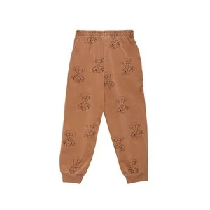 Relaxed fit jogger pant in a faded brick organic cotton. Printed with a whimsical rendition of Peggy Guggenheim and her dog, Sir Herbert.